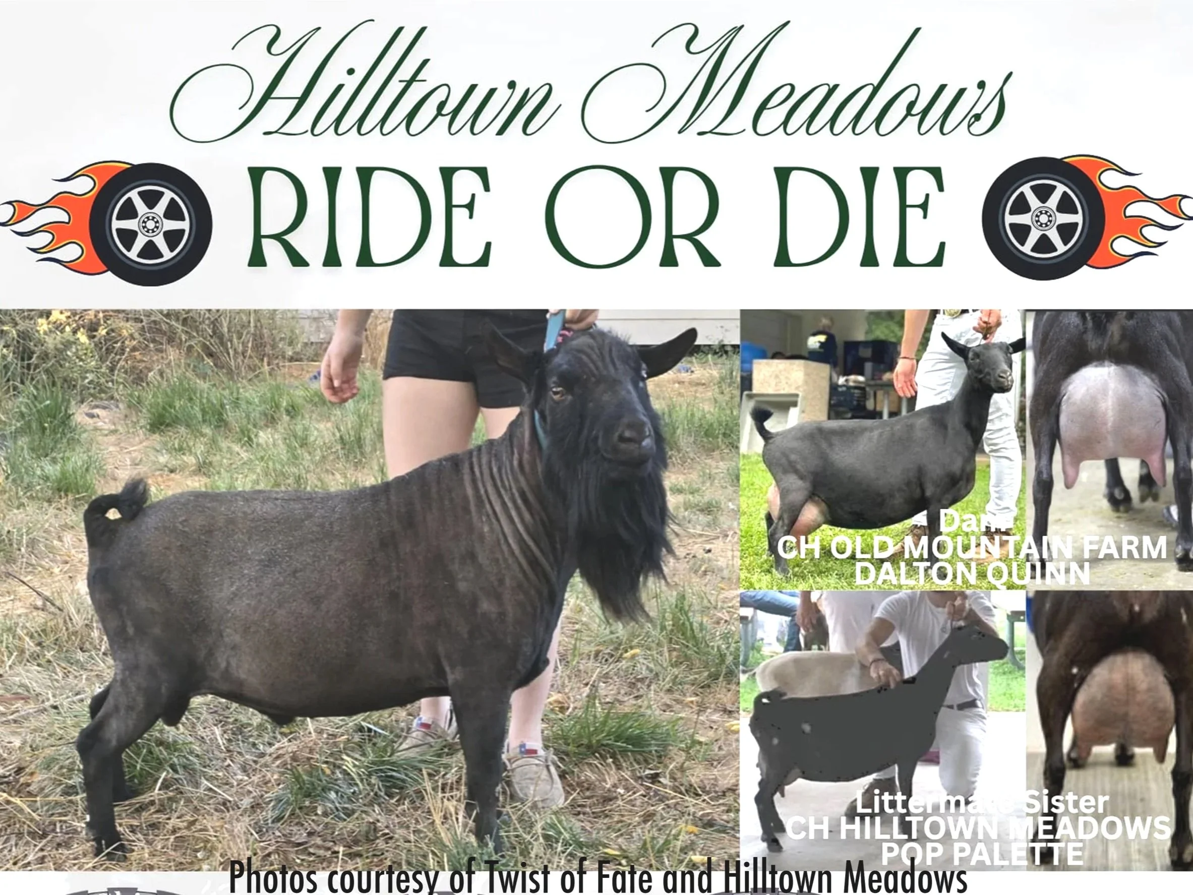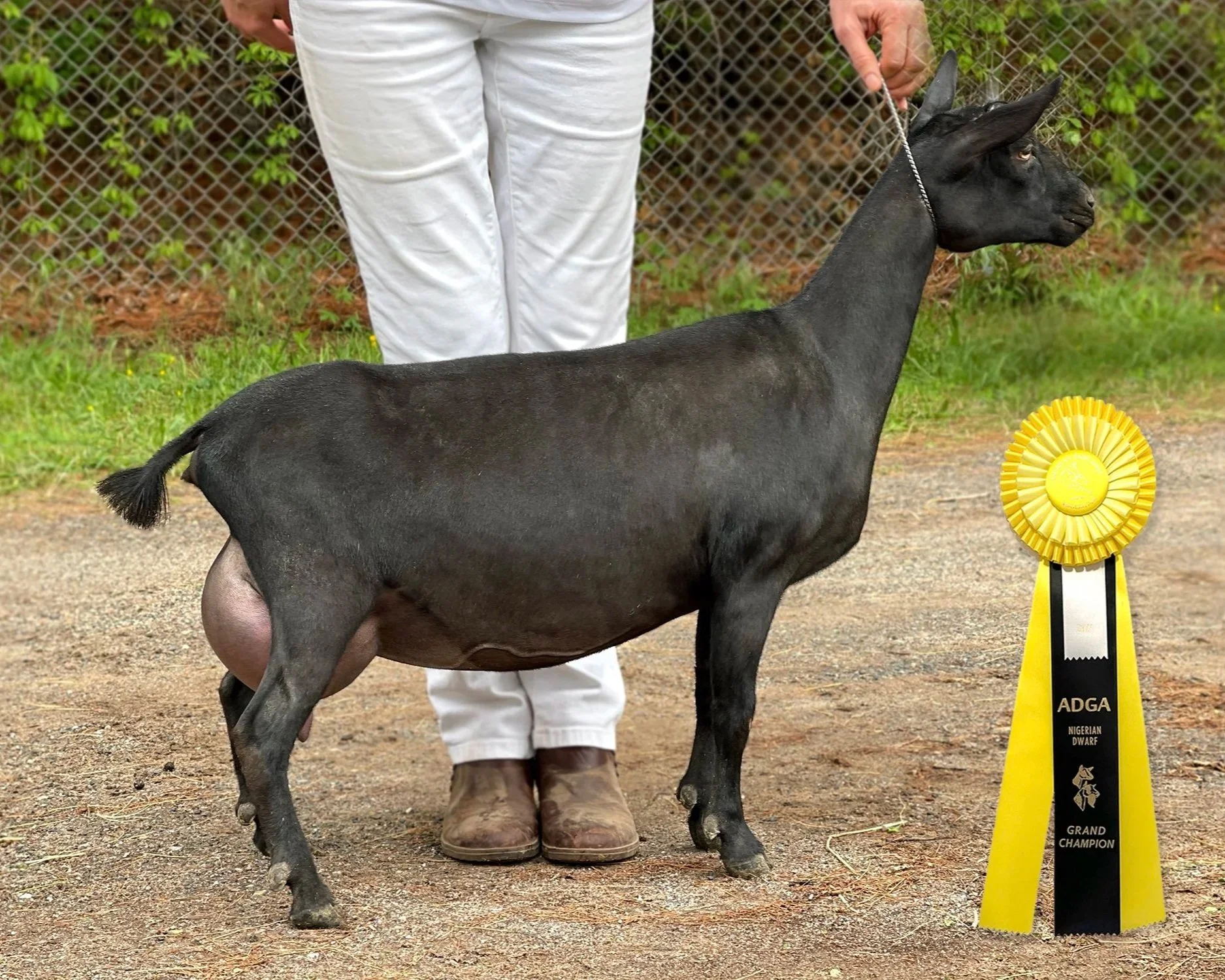 Widow: 1x Grand Champion; daughter of Wolfivan CQ Kentucky Bourbon *B (Littermate to 2024 ADGA national Champion, Wolfivan CQ Ginger Root)