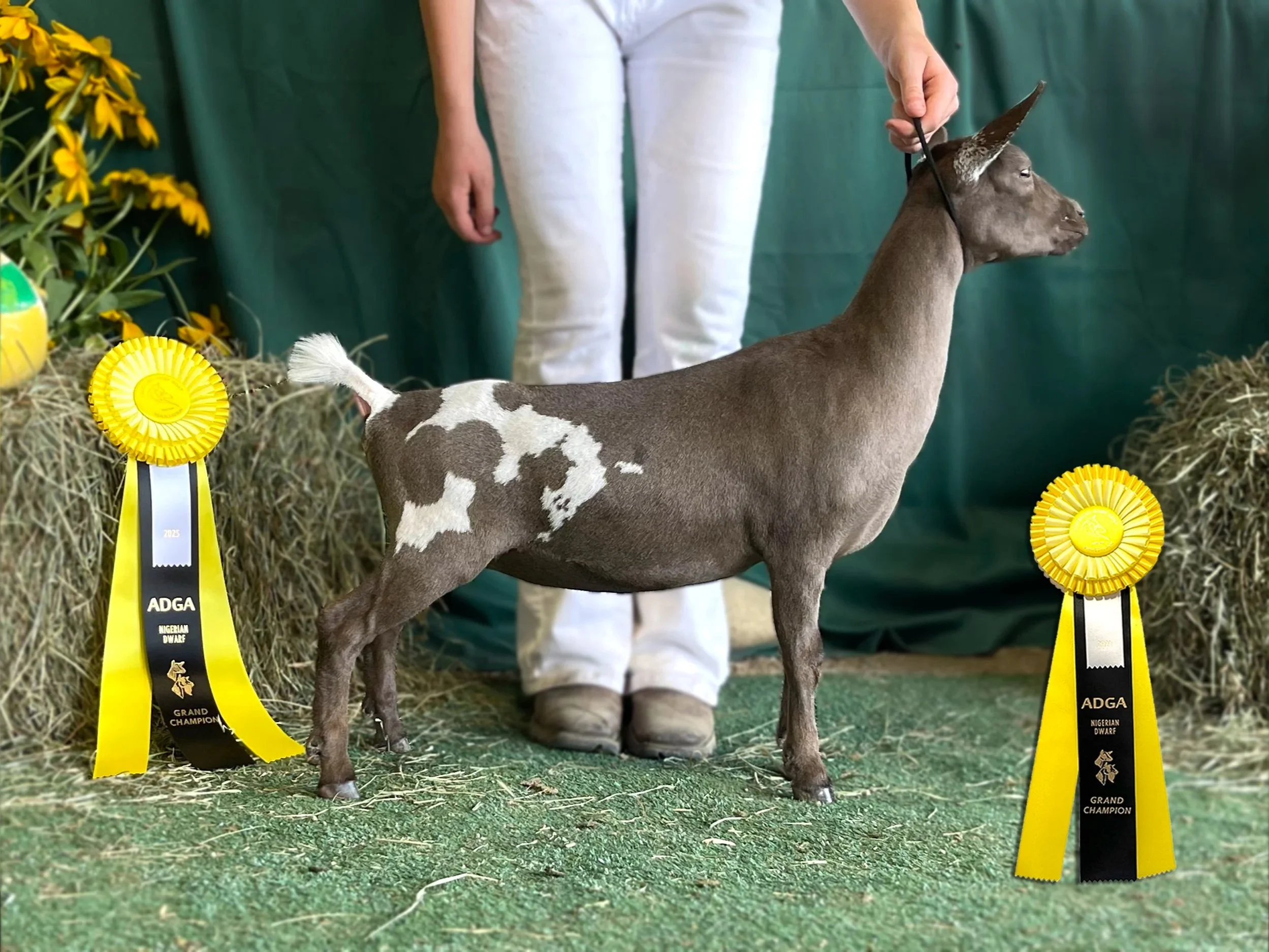 Sweet Pea: 5th place Senior Kid at 2024 ADGA National Show; 1x Best Junior Doe In Show; 1x Grand Champion
